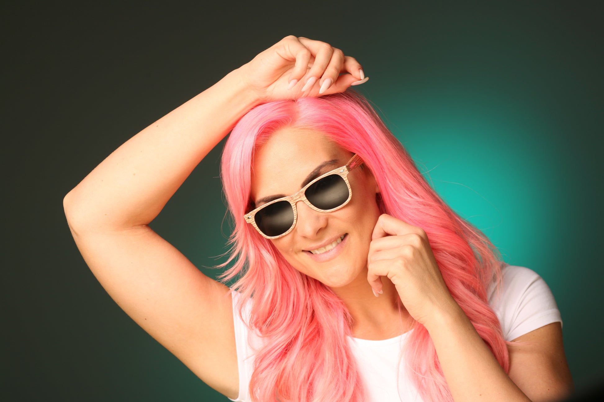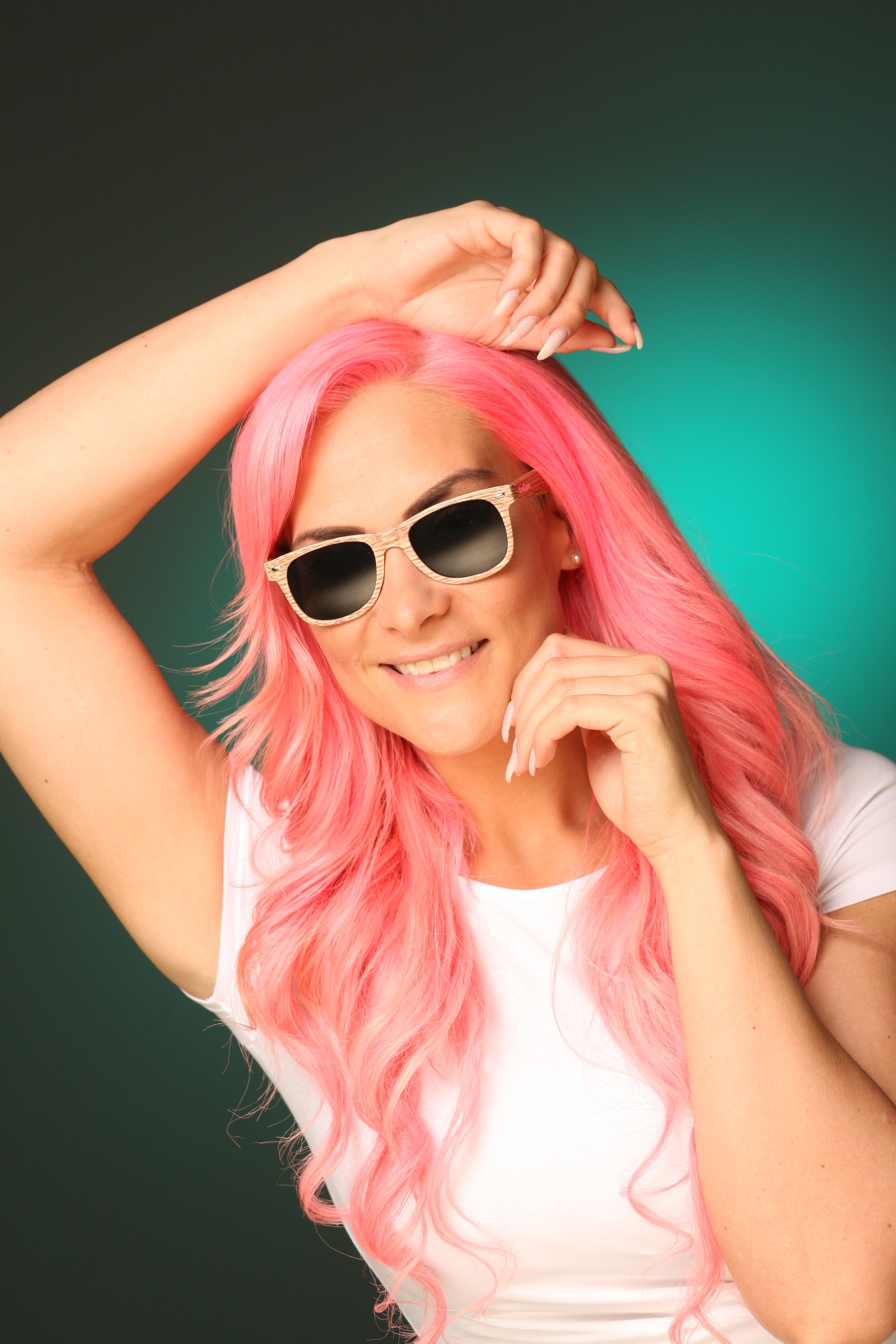 Trendige angesagte Sonnenbrille für Damen und Herren in stilvollen Designs, mit einem Brillengestell in Holzoptik.