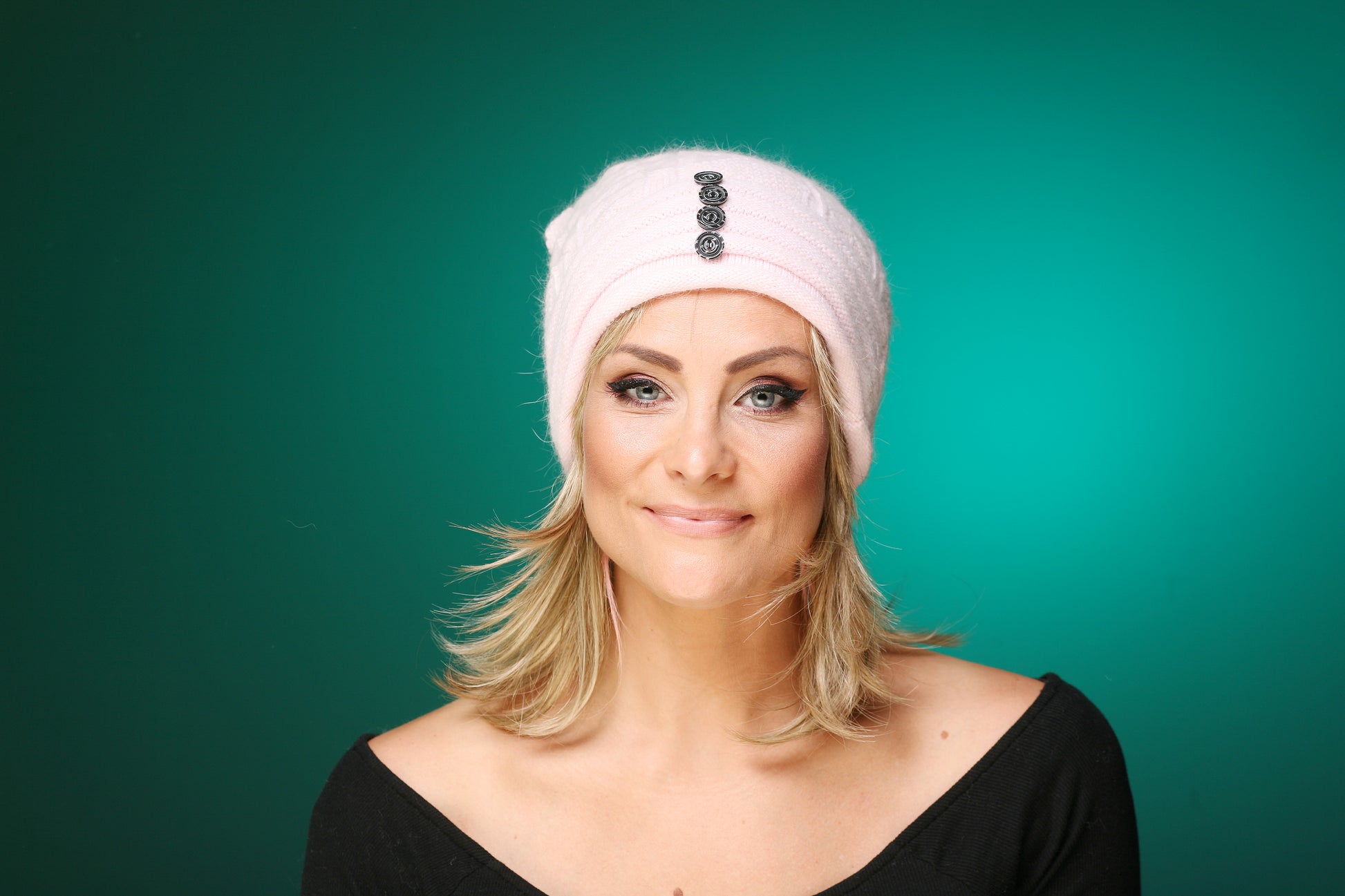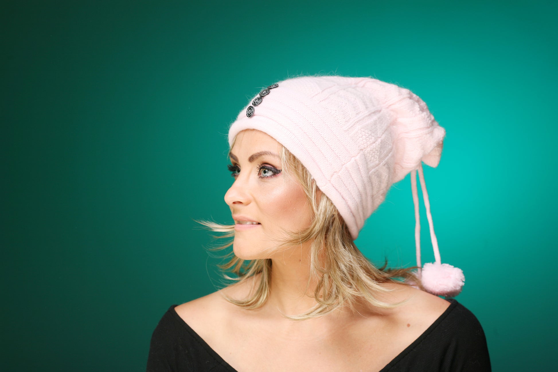 Modische Mütze, die durch den Angorawollanteil und die aufgesetzten Straßsteine sehr edel wirkt.