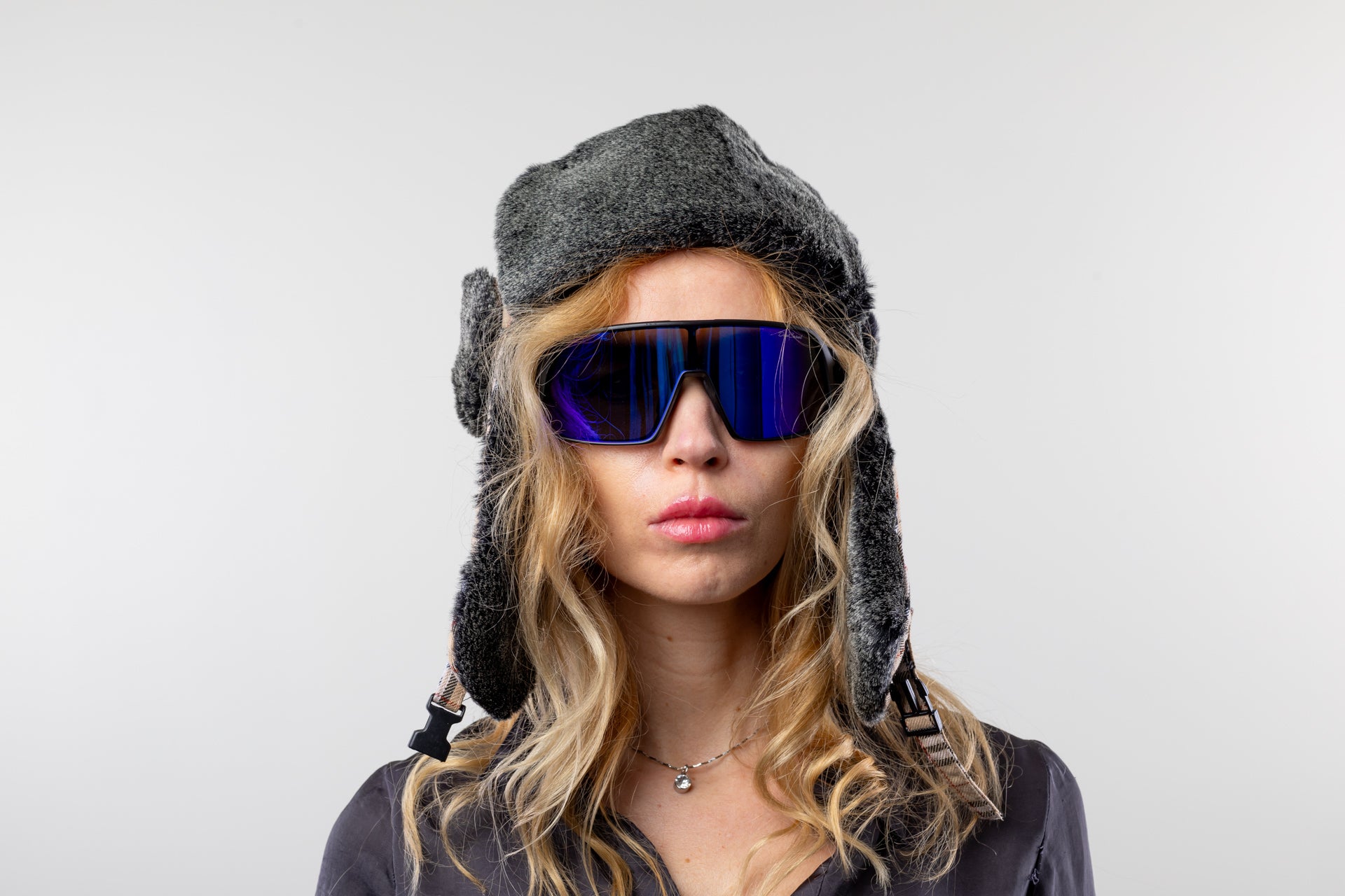 DC-W-484-Trendy Mütze mit Ohrenklappen und Verschluß am Hals
